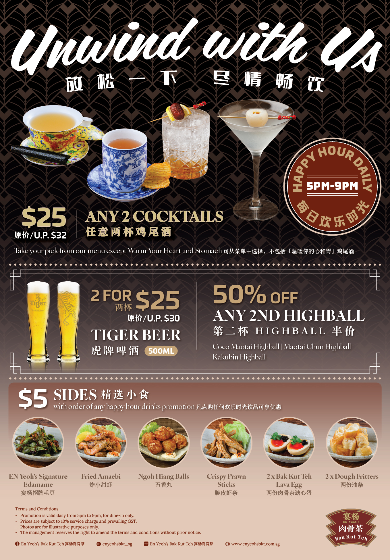 Because Bak Kut Teh warms your soul, but Happy Hour lifts your spirits